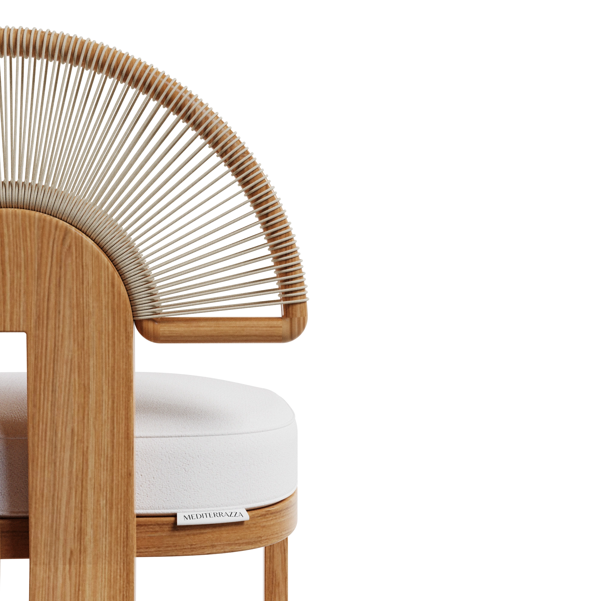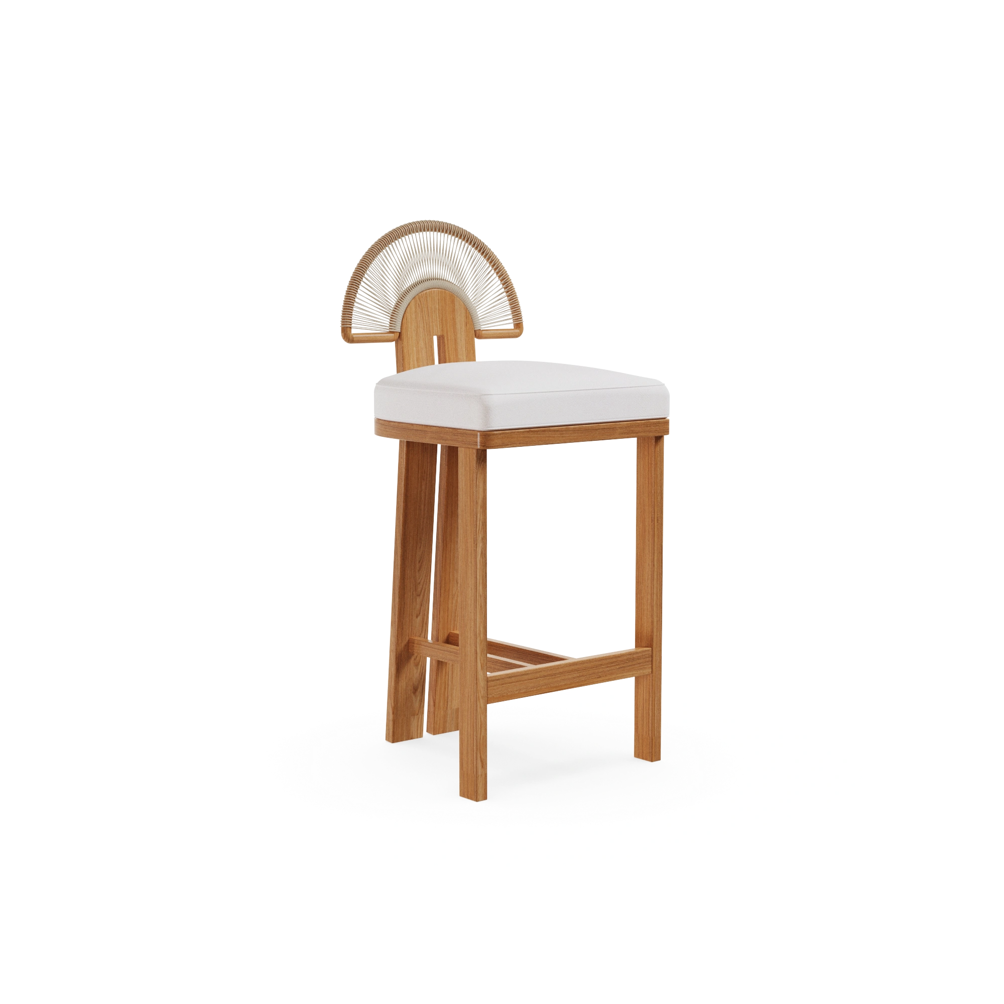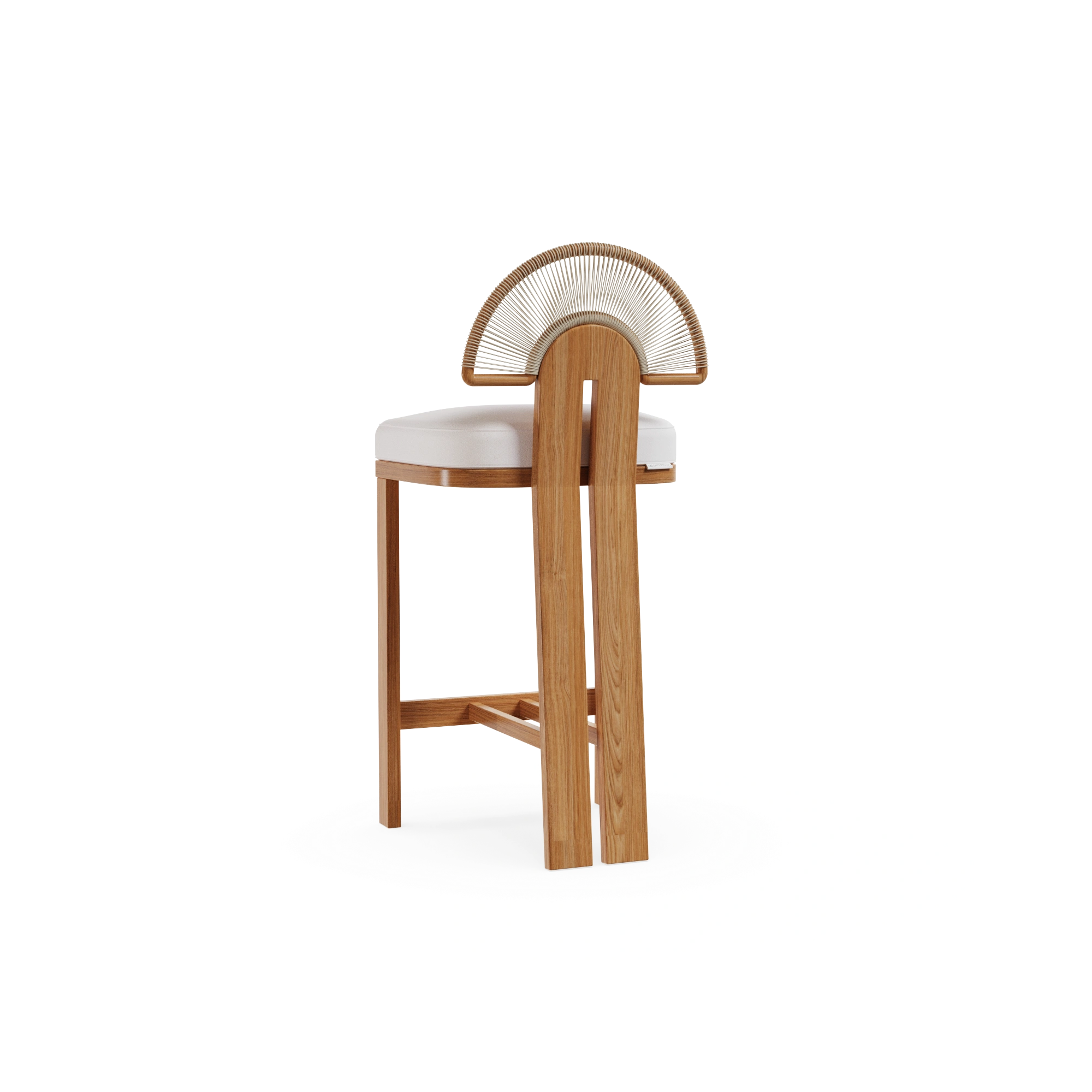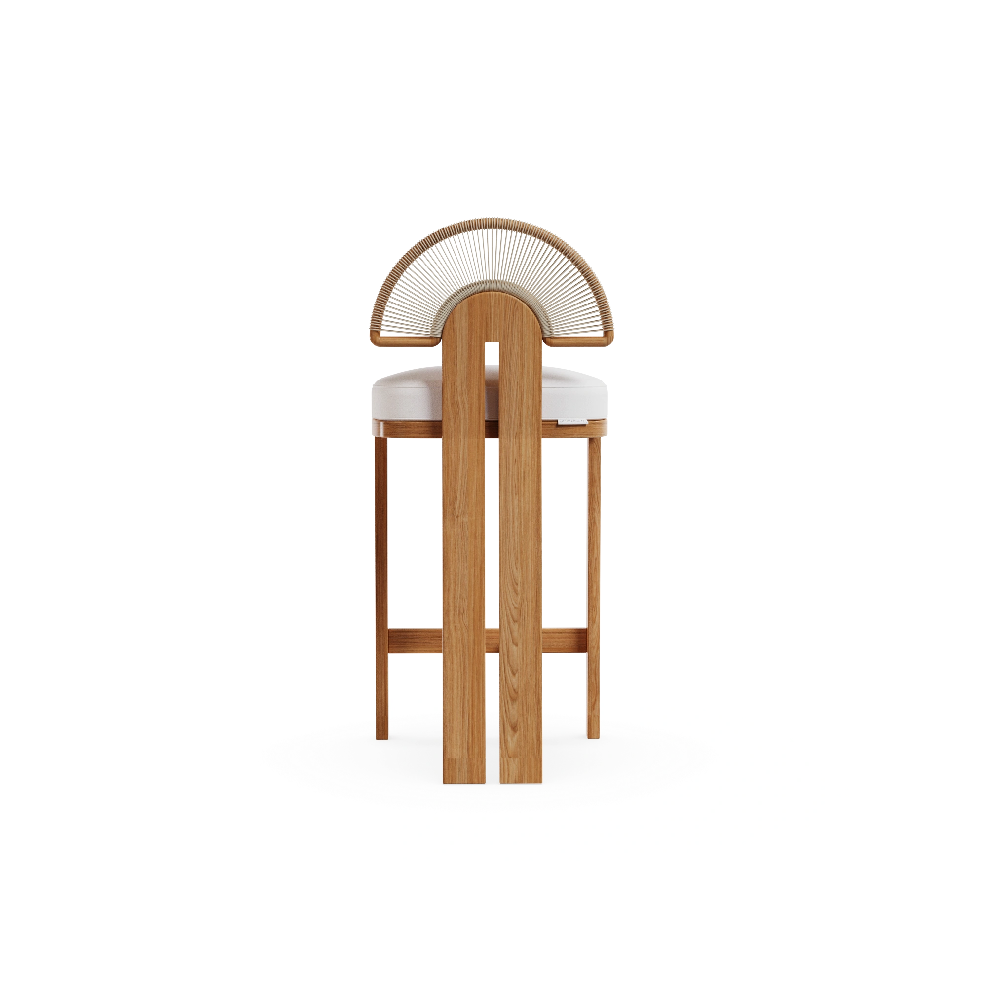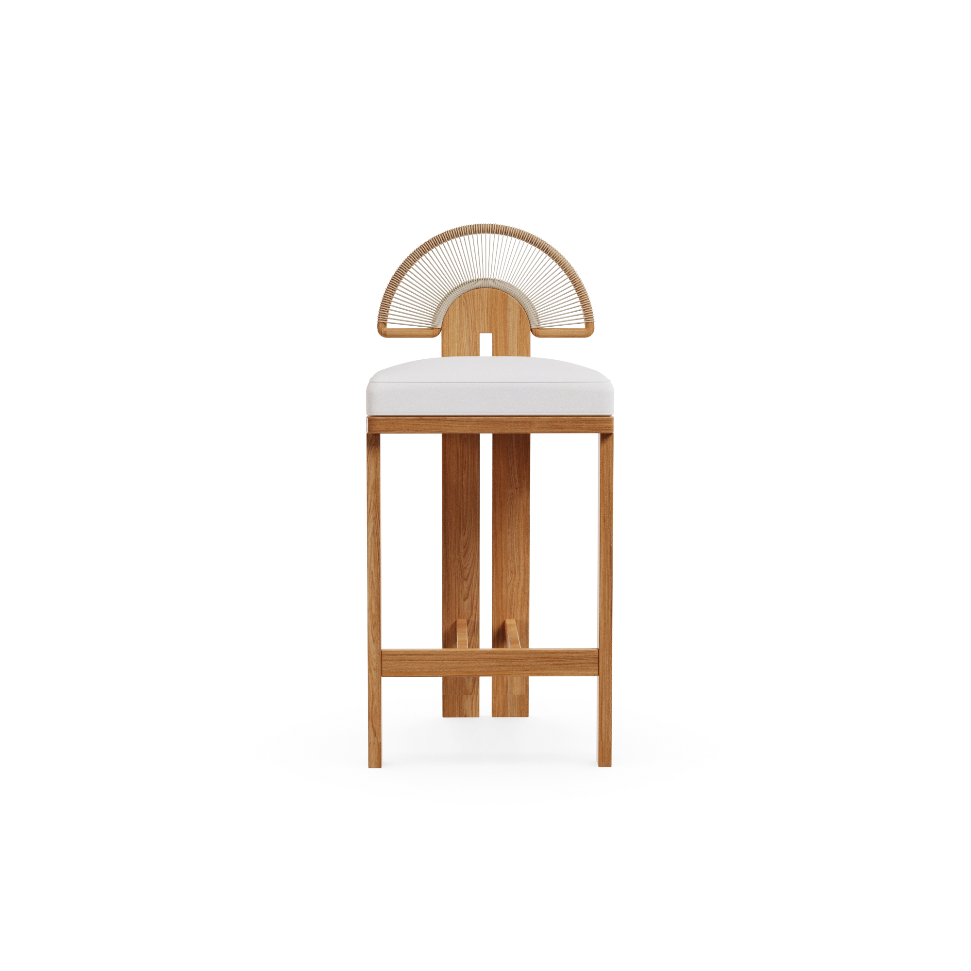 The Antibes Bar Chair is a sculptural piece that celebrates Mediterranean elegance and craftsmanship. Expertly crafted in iroko wood, it is perfectly suited for outdoor use, ensuring both durability and natural beauty. The distinctive backrest, detailed with synthetic cord arranged in a sun-inspired pattern, adds an artistic touch while evoking the warmth of Mediterranean landscapes. Designed with meticulous attention to detail, the Antibes Bar Chair blends comfort and style.