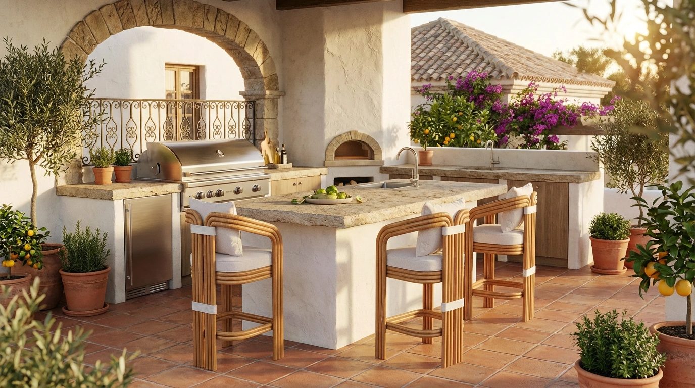 Blending timeless charm with Mediterranean sophistication, the Tropea Bar Chair is designed to elevate outdoor living. Crafted in an elegant iroko wood finish and enhanced with a subtle synthetic cord detail, it reflects both durability and artisanal care. Its vintage-inspired design brings character and style, while the cushioned seat and ergonomic proportions ensure lasting comfort. Perfect for terraces, poolside bars, or alfresco dining, the Tropea embodies the essence of outdoor luxury furniture, where craftsmanship meets relaxed elegance.