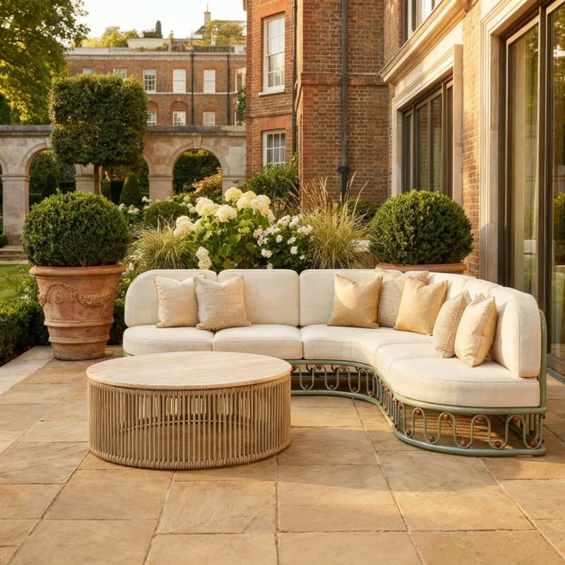 The Bonifacio Side Table combines Mediterranean elegance with timeless craftsmanship. Handcrafted with a natural travertine top and a solid iroko wood base, this piece is designed to withstand outdoor living while maintaining refined sophistication. The base features detailed carved elements, adding character and artistry to its design. Perfect as a statement accent in terraces, gardens, or poolside areas, the Bonifacio side table embodies the essence of outdoor luxury furniture, blending durability with exquisite style.