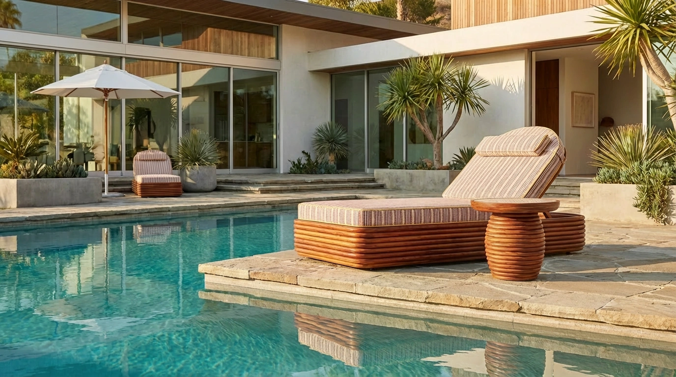 The Mijas Side Table is a refined piece of outdoor luxury furniture, hand crafted to highlight Mediterranean elegance. Its top is meticulously inlaid with natural travertine, bringing timeless stone textures to your outdoor living. The sculptural base, made of iroko wood suitable for outdoor use, features a distinctive ribbed effect that enhances both durability and design. Perfect as a statement piece or a functional accent, the Mijas Side Table blends artisanal detail with contemporary outdoor sophistication.