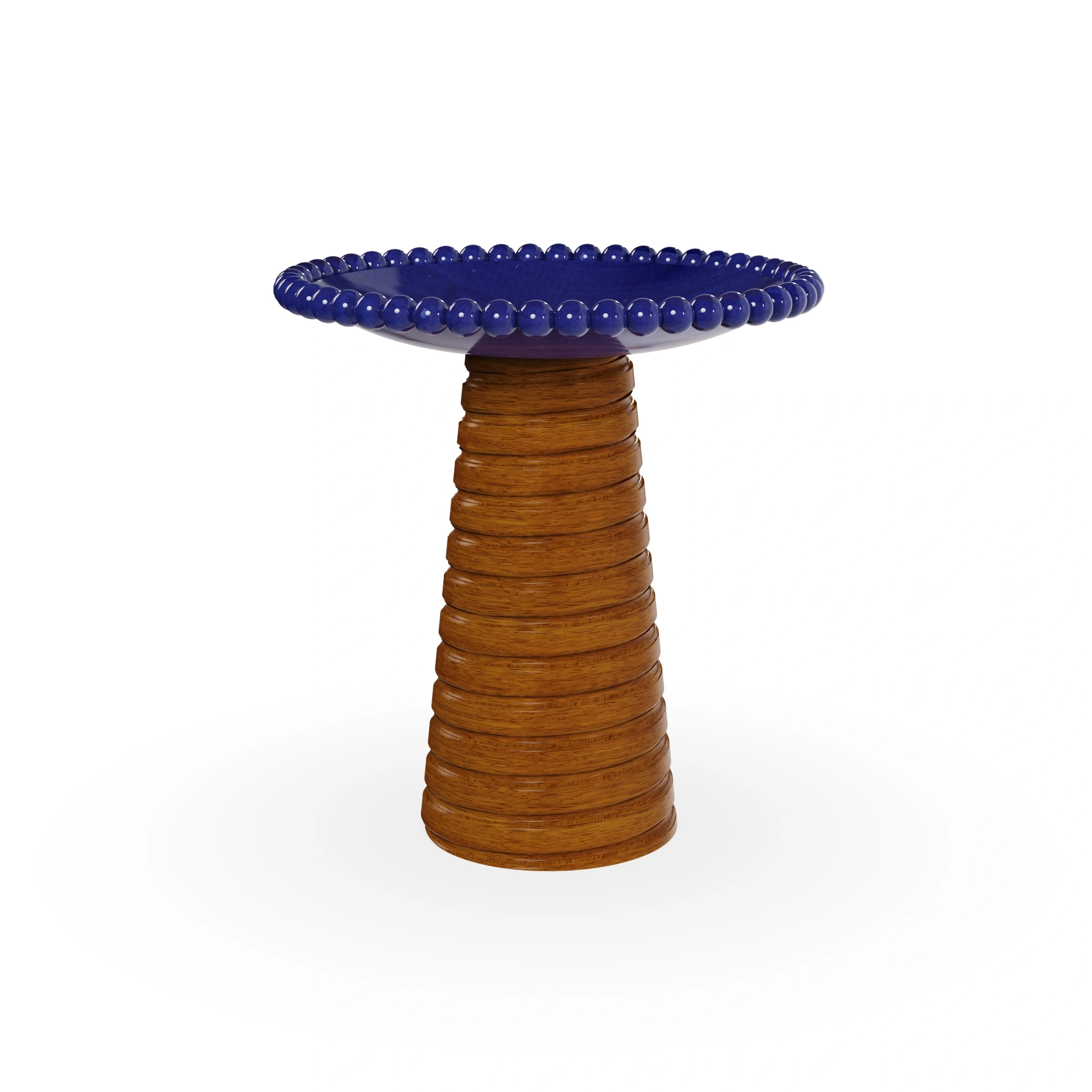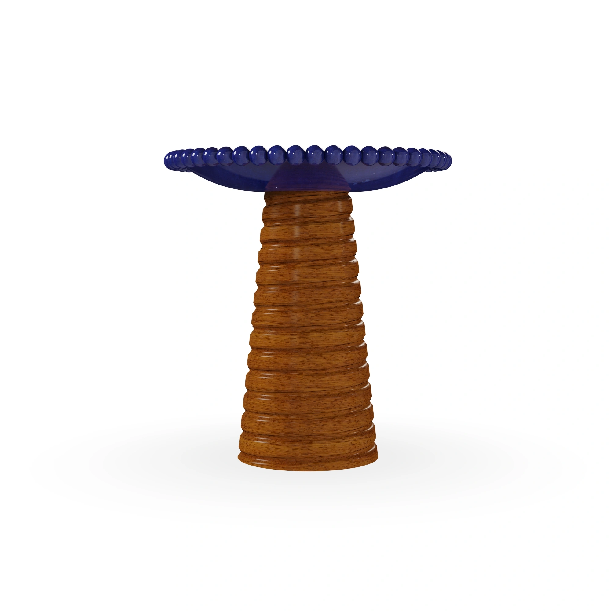 The Nice Side Table is a celebration of Mediterranean artistry and refined craftsmanship. Its sculptural base, crafted from solid Iroko wood, showcases gentle ridges that highlight the material’s natural warmth and resilience. The ceramic top, finished in a deep ocean-inspired hue, adds a bold contrast and a touch of coastal vibrancy. Each bead-like detail framing the tabletop is meticulously crafted, reflecting the care and precision of artisanal design. With its sculptural form and tactile balance, the Nice Side Table is a striking accent for any luxury outdoor design, where Mediterranean character meets timeless elegance.