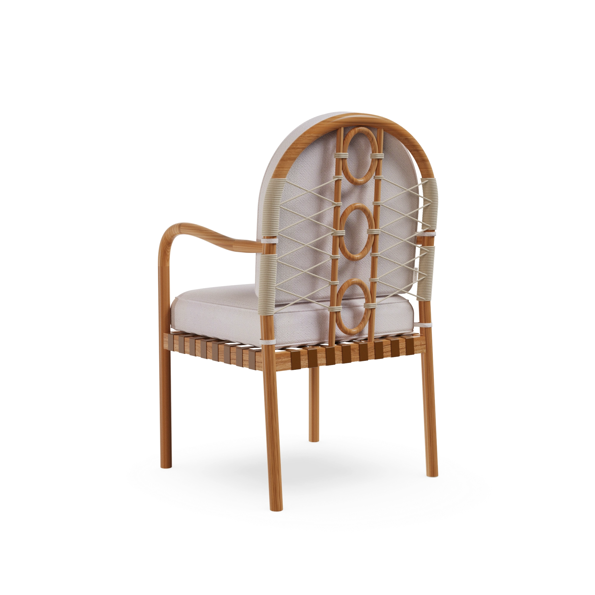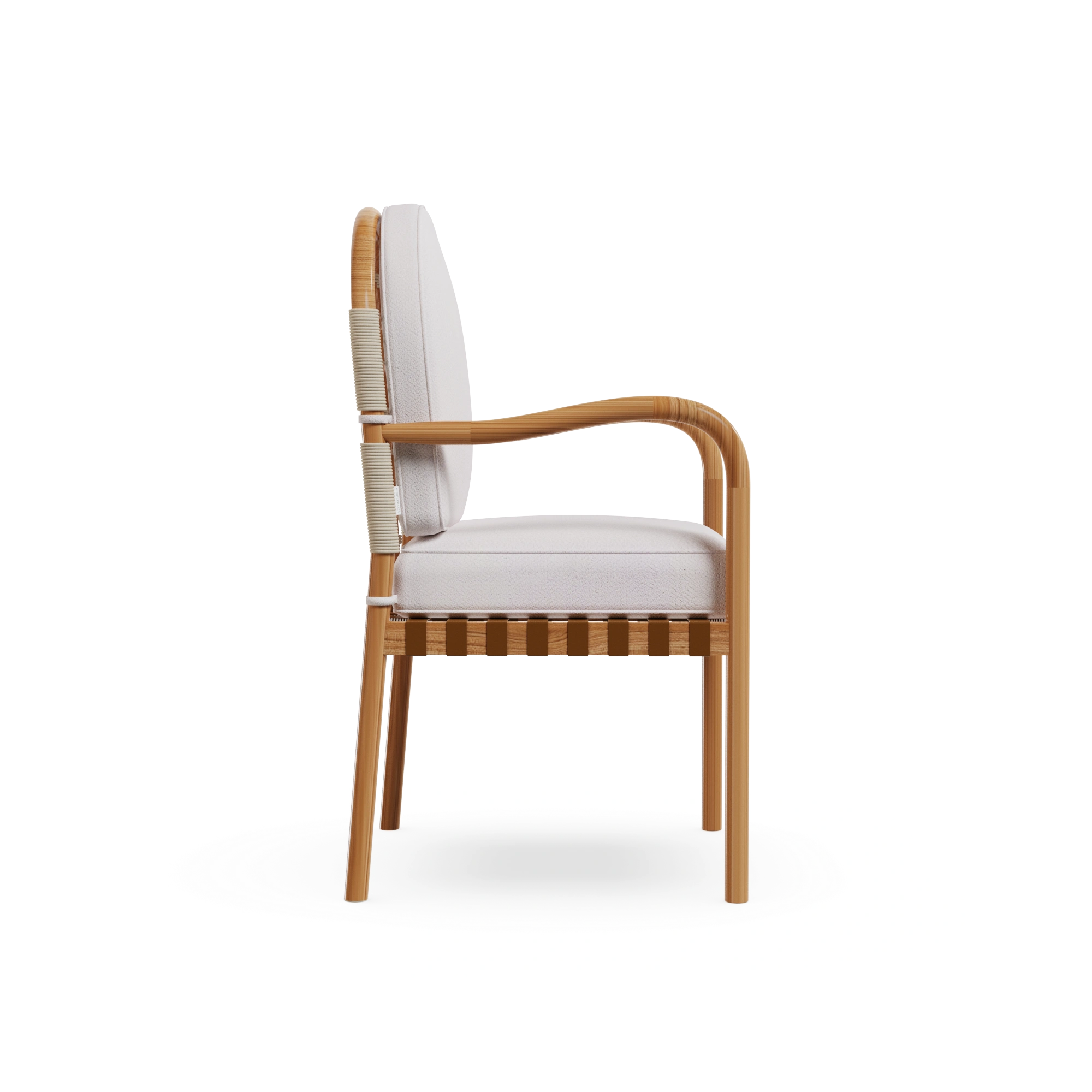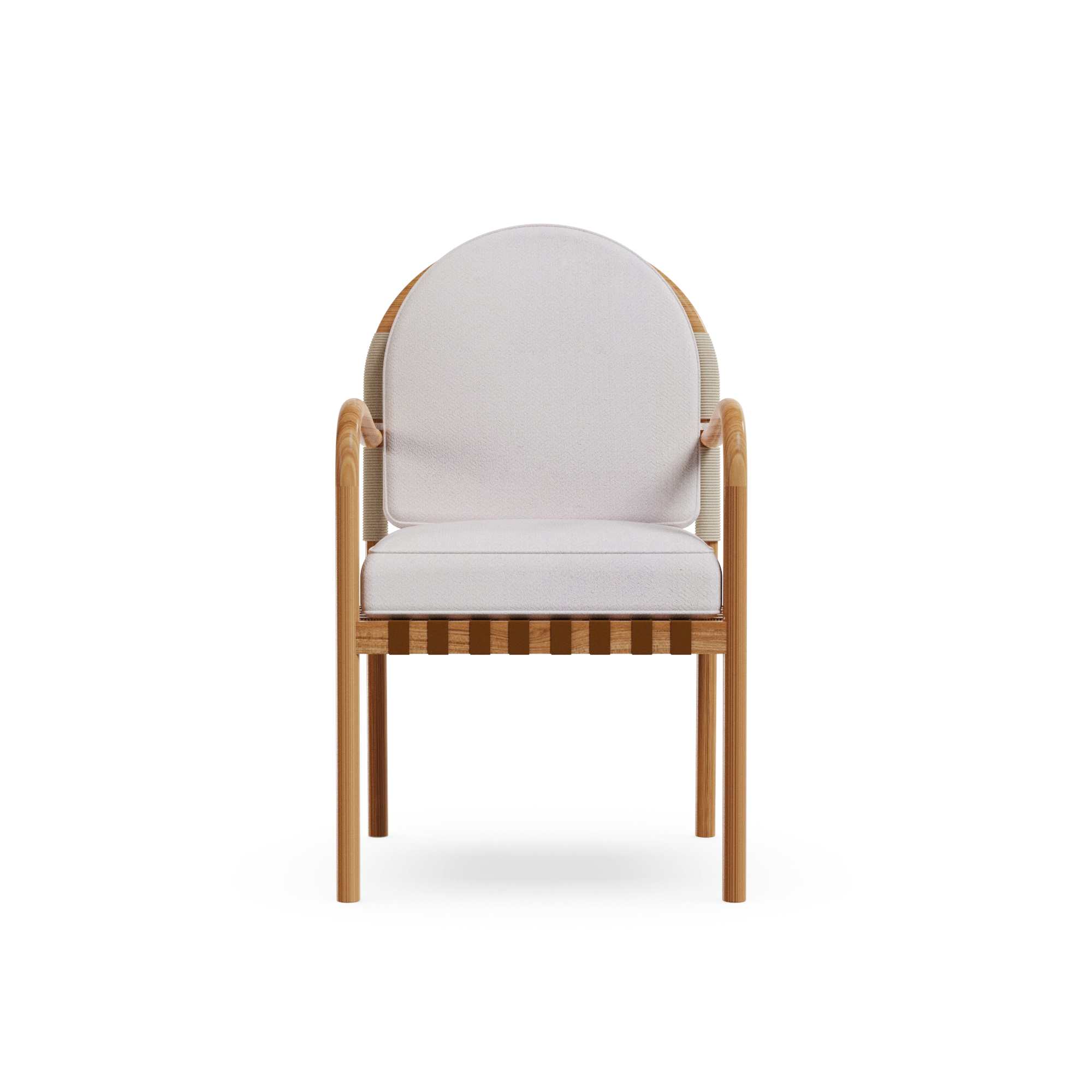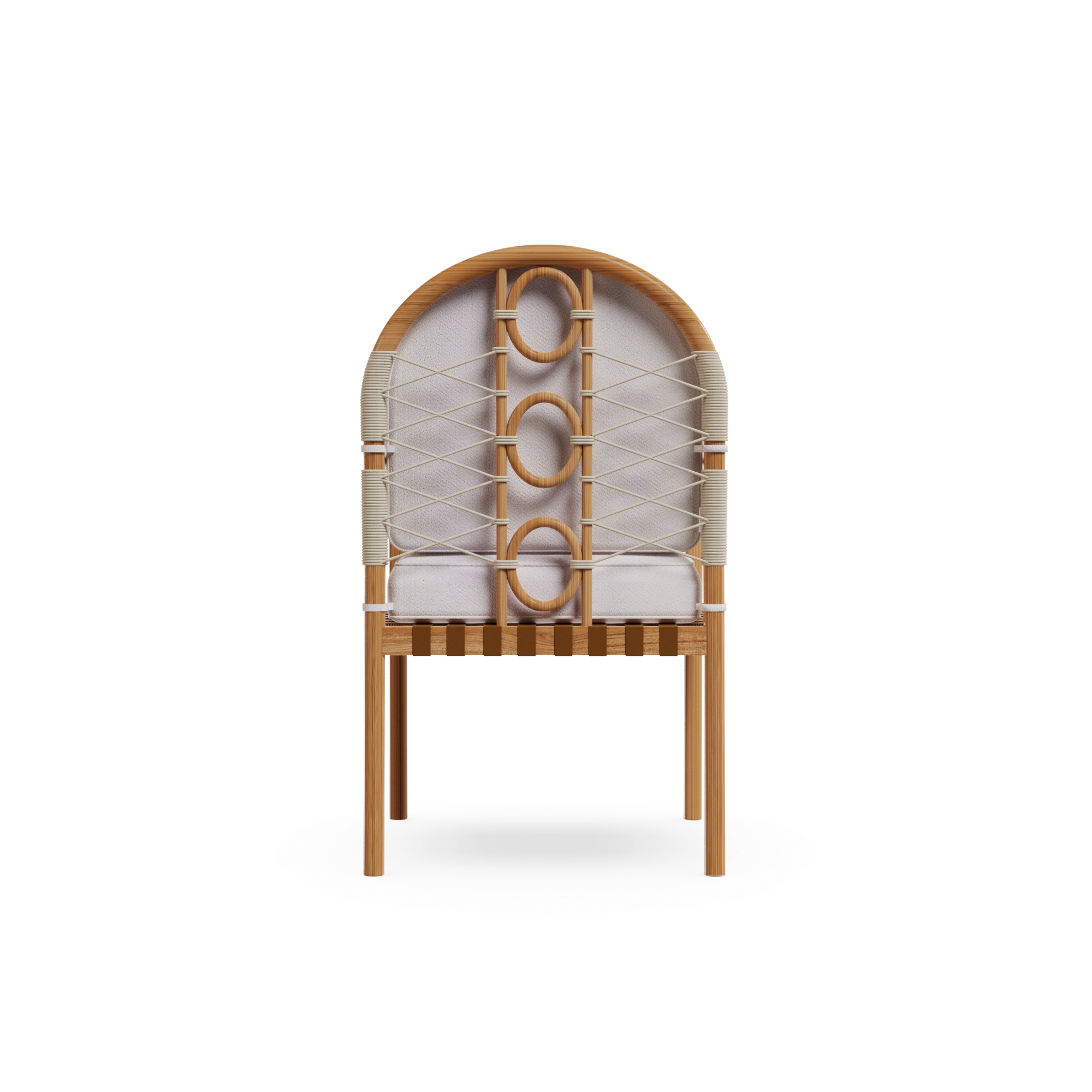 The Ferrat Dining Chair is a celebration of craftsmanship and Mediterranean elegance. Handcrafted in iroko wood, it is designed to withstand outdoor living while bringing warmth and character to any space. Its carefully detailed backrest, paired with plush seat and back cushions, ensures exceptional comfort. With a bohemian vintage-inspired style and artisanal attention to detail, the Ferrat Dining Chair is the perfect expression of outdoor luxury furniture