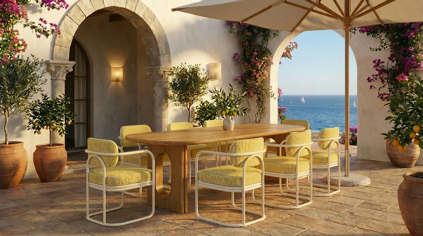 The Zagaleta Dining Chair by Mediterrazza redefines outdoor luxury furniture with its hand-crafted lacquered metal frame and Mediterranean-inspired upholstery, blending timeless elegance with exceptional comfort for sophisticated al fresco living.