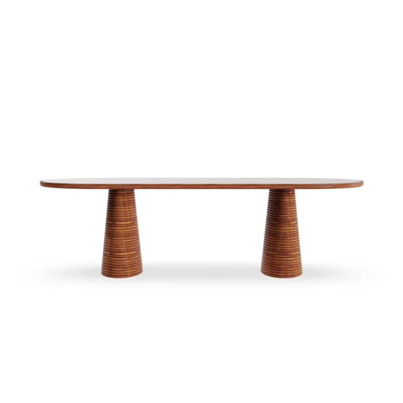The Rome Dining Table embodies timeless elegance and Mediterranean inspiration. Crafted with precision in durable iroko wood, this oval dining table is designed to withstand outdoor use while maintaining its natural beauty. Its sculptural base features distinctive arched legs, a nod to classical Roman architecture, bringing both strength and sophistication to any setting.