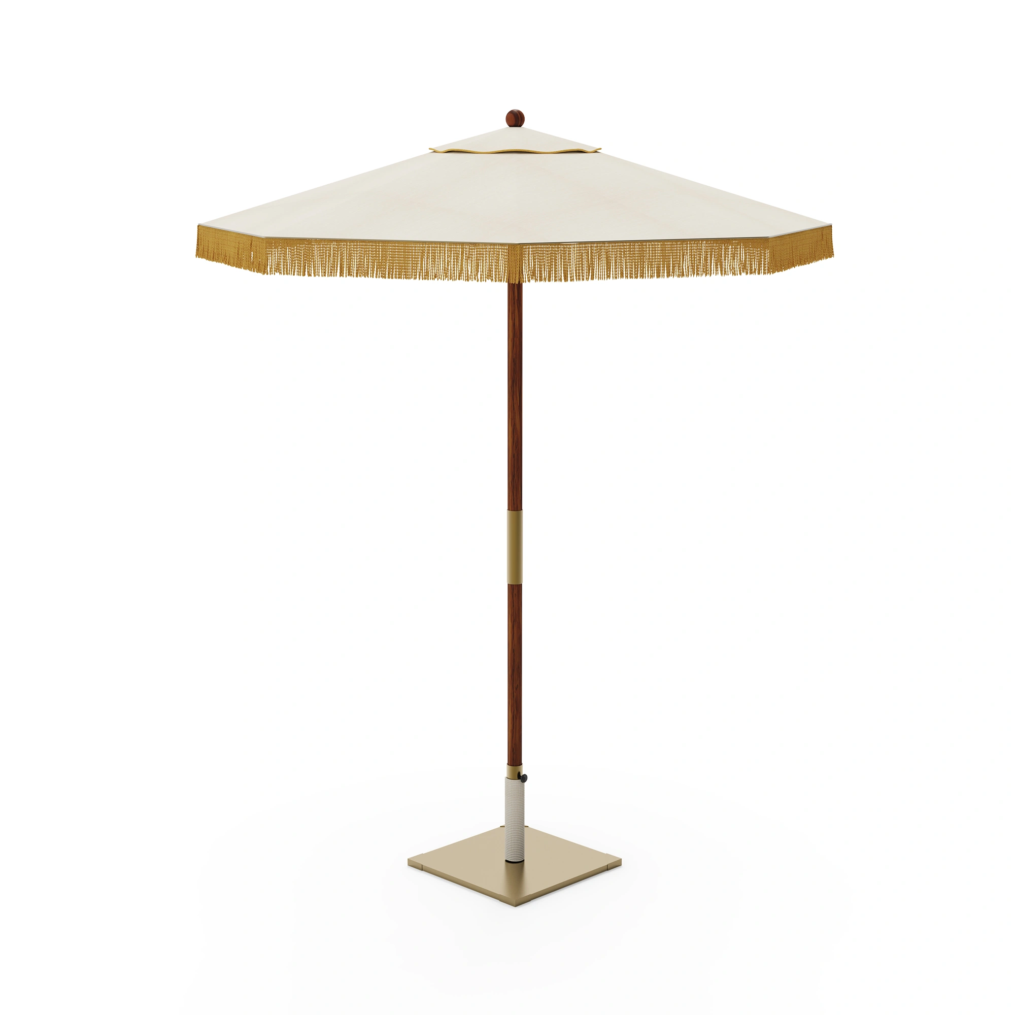 The Bellagio Parasol by Mediterrazza is a sophisticated expression of outdoor luxury furniture, featuring a handcrafted iroko base paired with refined metal details for durability and style. Its roller opening system ensures ease of use, while the decorative fringe adds a touch of Mediterranean charm and character. Designed for both residential terraces and hospitality projects, Bellagio combines artisanal craftsmanship, functionality, and timeless elegance to create shade with distinction.