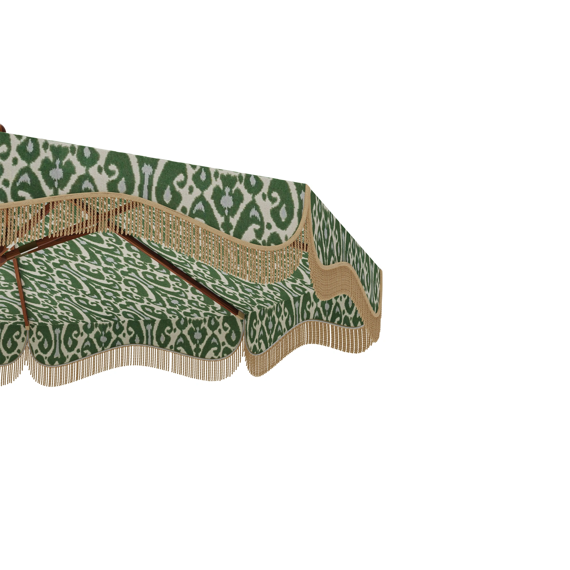 The Matera Parasol by Mediterrazza is a refined expression of outdoor luxury furniture, featuring a handcrafted iroko base with sleek metal details for durability and style. Its roller opening system ensures effortless use, while it´s vintage shade with a decorative fringe and ikat-patterned fabric add personality and vibrant Mediterranean charm. Perfect for both residential and hospitality projects, Matera combines artisanal craftsmanship, elegance, and functionality to create shade with character.