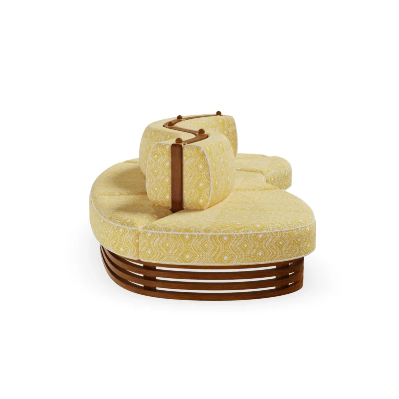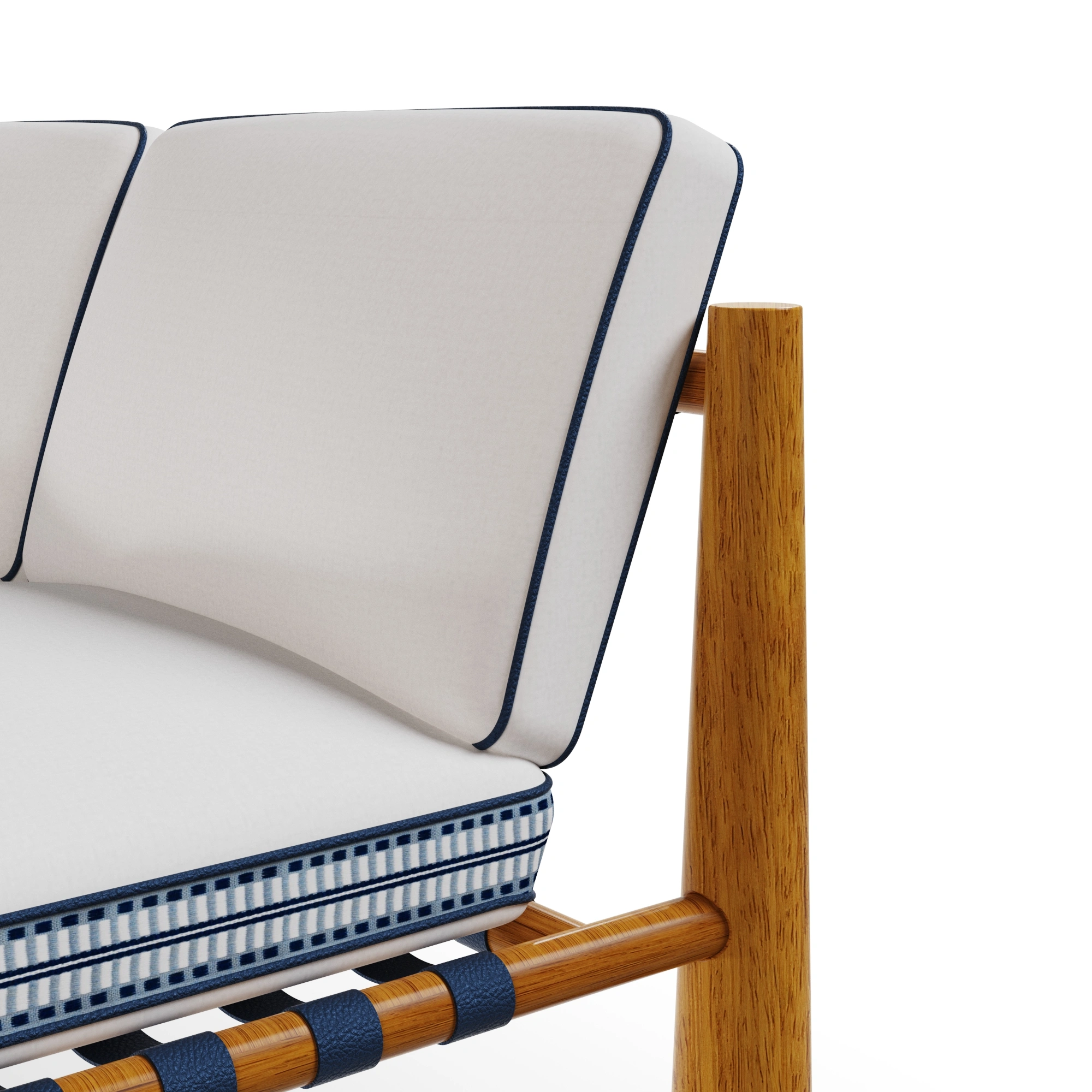 Inspired by Mediterranean craftsmanship, the Amalfi Sofa combines natural beauty with refined comfort. Its structure is crafted from rich iroko wood, complemented by elegant leather cord details that enhance its artisanal character. The seat cushion is elevated with a distinctive patterned tape finish, while the subtly inclined backrest ensures exceptional comfort for long moments of relaxation. Ideal for both residential and hospitality projects.