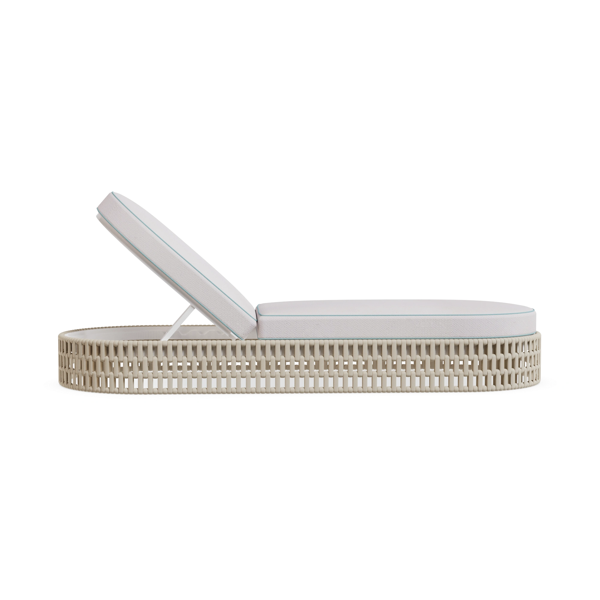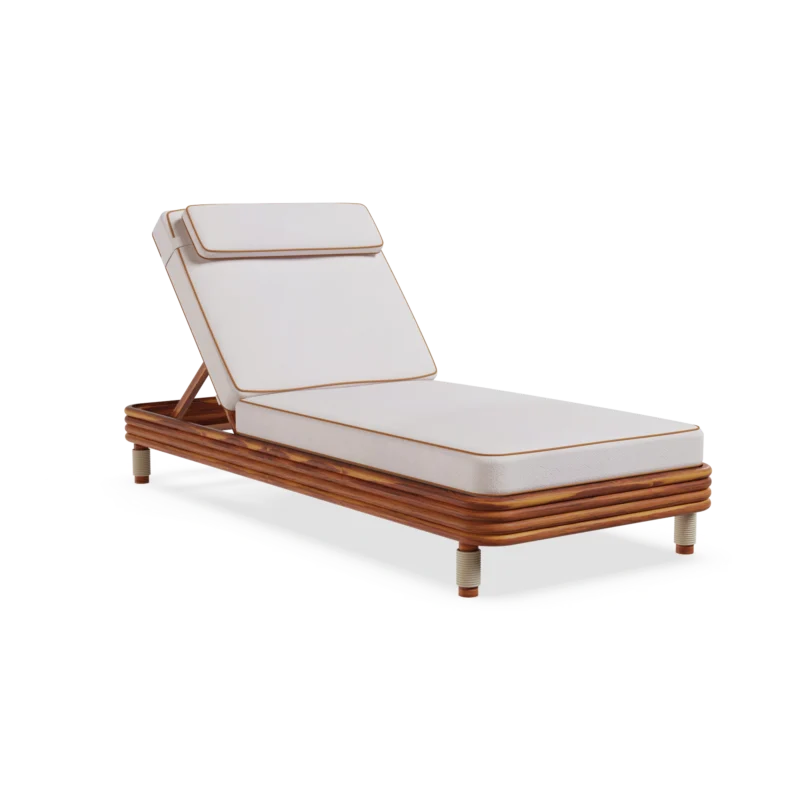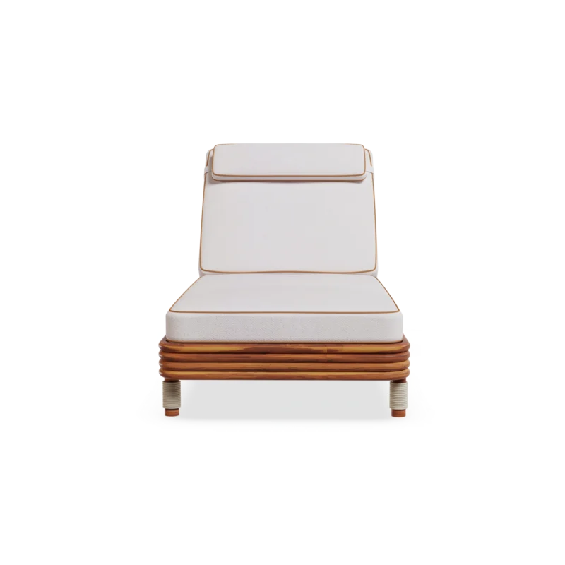 The Navagio Sun Lounger is carefully handcrafted in lacquered metal for durability, it features a white-cream synthetic cord base that evokes sandy shores, while the subtle blue piping reflects crystalline waters, inspired by the breathtaking contrasts of Navagio Beach. Designed for both style and comfort, its generous cushions ensure relaxation, while the adjustable backrest allows you to find the perfect inclination.