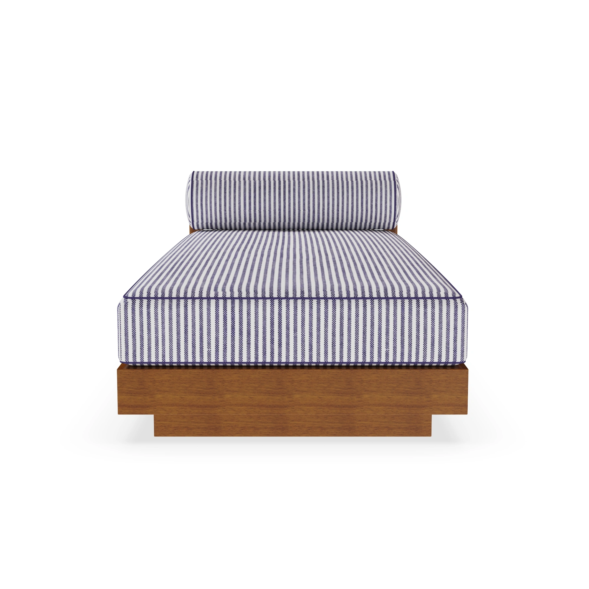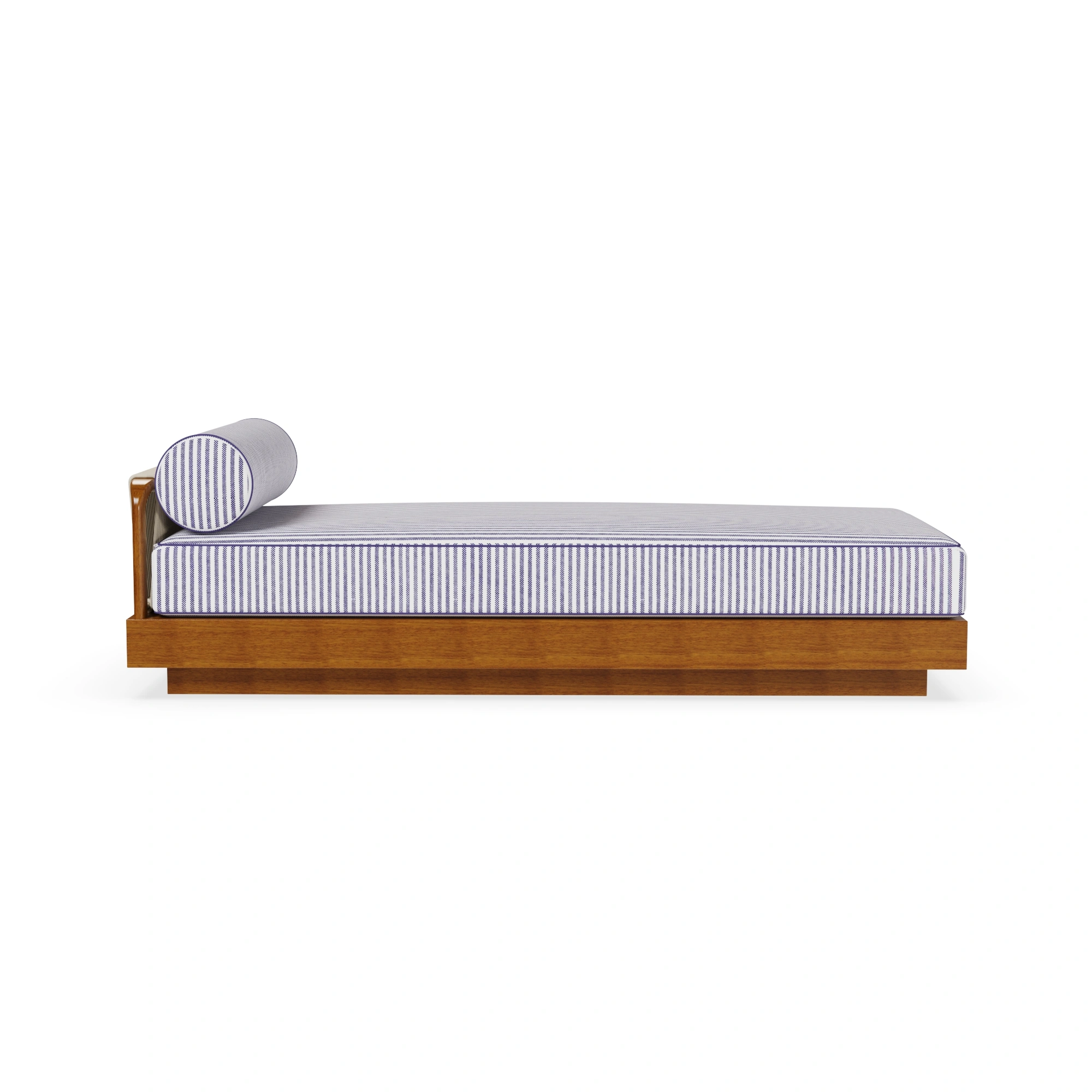 The Pardigon Sun Bed redefines luxury outdoor design through refined craftsmanship and timeless Mediterranean aesthetics. Handcrafted in solid Iroko wood, its clean architectural base contrasts beautifully with the woven cord detail on the backrest, showcasing meticulous artisanal work. The striped upholstery in soothing blue tones evokes a sense of coastal serenity, while the soft bolster cushion enhances both comfort and sophistication. Designed for elegant poolside lounging or tranquil terraces, the Pardigon Sun Bed combines natural materials and understated elegance — a celebration of craftsmanship, comfort, and Mediterranean lifestyle.