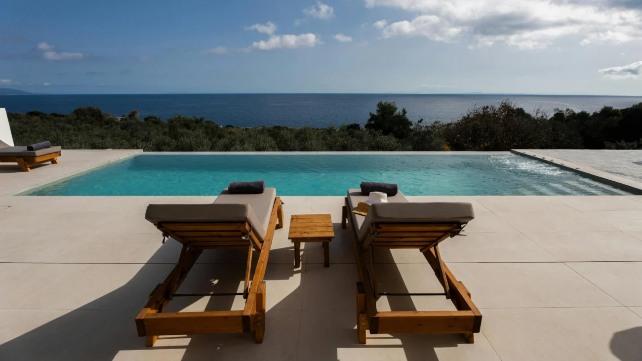 Landscaping plays a decisive role in defining the poolside lounger layout. Low Mediterranean shrubs—lavender, rosemary, agave—create soft boundaries without obstructing sightlines. Tall cypress trees, positioned strategically, frame rather than block the sea.