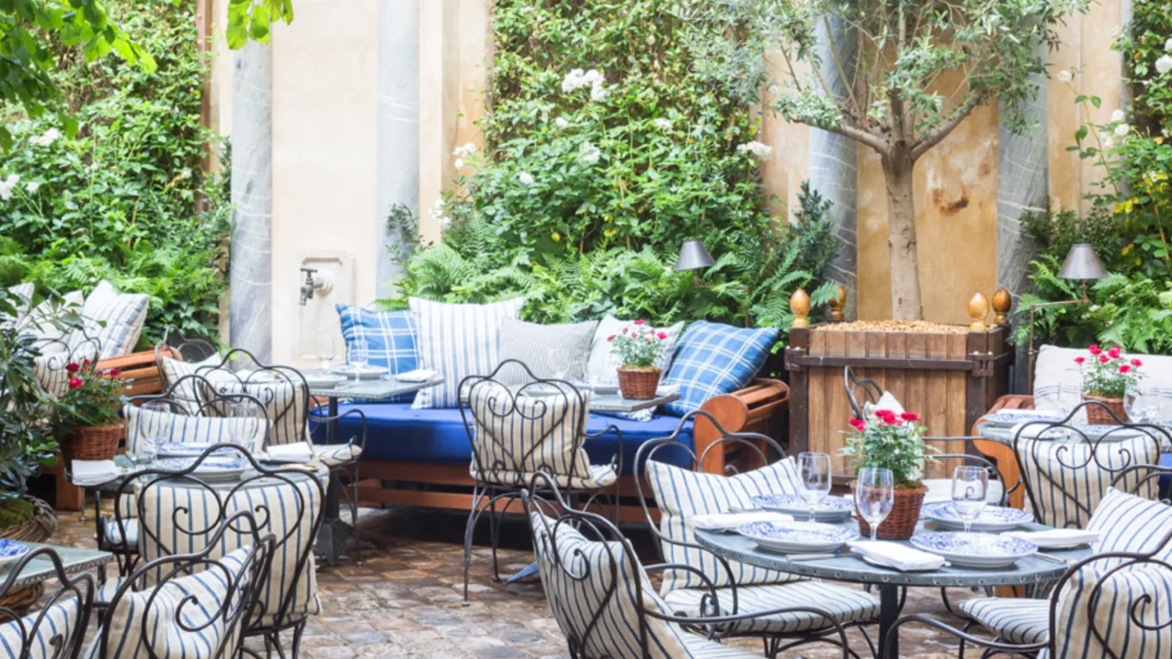 Hidden within a Left Bank courtyard, Ralph’s Restaurant offers a study in transatlantic elegance. Brick walls, climbing ivy, and classic bistro seating produce a layered, residential ambience.